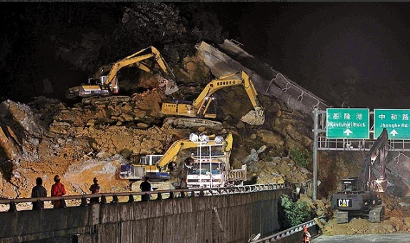 臺“交通部”出動大型機具,協(xié)調臺軍、征調民間大型挖土機等,24小時全天候排班開挖,預計至少20天才可運完20萬噸土石,25日晚至少出動30輛挖土機、47輛卡車等協(xié)助清運土石。