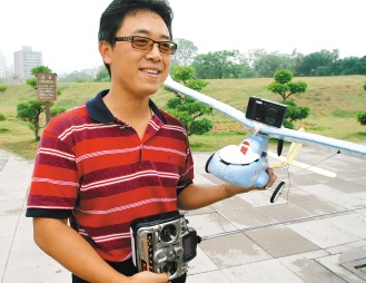 他表示,只要將小型的數(shù)位相機固定在遙控飛機機首,按下連拍模式后讓飛機升空“霰彈打鳥”,1次上空連拍數(shù)百張下來,至少可以挑到幾張好畫面。