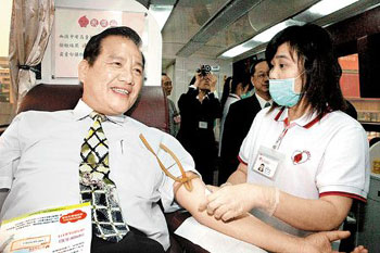 中新網5月6日電 據臺灣《中國時報》報道,臺灣新竹市長許明財于5日出席臺灣血液基金會年度績優表揚大會時,第102次的獻血。根據新竹獻血中心統計,許明財目前僅次于馬英九的147次,是獻血次數較多的島內官員之一。