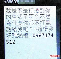 民眾藍先生昨日在臺北市議員李文英陪同下出面控訴,他十七歲兒子前天凌晨收到“為什么你都不打電話給我呢?這樣我好難過唷”短信,以為是同學而回撥,翌日接獲電信業者通知暴增一萬八千多元通話費。