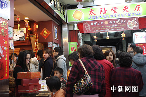 中新網臺中2月22日電 (屈運栩)初到臺中的人,一定會被路兩旁零次櫛比,目光應接不暇的“太陽堂”招牌和店鋪吸引。店鋪里售賣的太陽餅是臺灣最有代表性的特產。春節剛過,記者走訪了臺中太陽餅老店鋪最集中的自由路,看到各間老餅鋪前都排起長隊,一片生意興隆景象。
