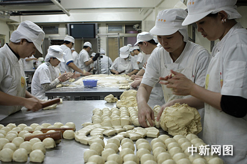 走進詹益恭負責的阿明師老店的工廠里,記者了解到太陽餅制作的全過程,也終于知道太陽餅之所以在味道和口感上與眾不同的“秘訣”。太陽餅制作共五道工序。在按照傳統配方選取中筋面粉,低筋骨后,要將面鞣到合適的軟硬度。接著分成雞蛋大小的面團后加入“酥”,這個所謂的“酥”是讓面皮酥軟的關鍵材料。接著搟皮要層次夠,且力道均勻,裹入內餡的牛舌狀面皮厚度需非常平均。在包入麥芽糖餡的時候完全依靠師傅的經驗和細心。包多包少,手法的生熟都會影響到最后出爐成餅的質量。最后烘烤的時候,根據餅的大小,調節溫度和時間。時間上的控制直接影響到麥芽餡的沸騰和蒸發程度,從而影響到口感。烤的時間過長則餡兒太硬,不夠的話又不夠香酥。