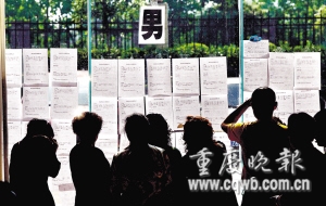 現(xiàn)場資料顯示,女士們學(xué)歷幾乎全在本科以上,其中不乏碩士與博士。33歲的博士劉小姐是大坪醫(yī)院醫(yī)生,她母親說,未來女婿只要本科以上就可以了。西南政法大學(xué)教師、碩士學(xué)歷的朱小姐要求男方大專以上,月收入2000元即可。碩士學(xué)歷、在重慶漫畫基地工作的丁嫻,她母親表示,希望未來女婿不要被女兒1.70米的身高嚇跑。“只要合得來,外在條件不是最重要的!
