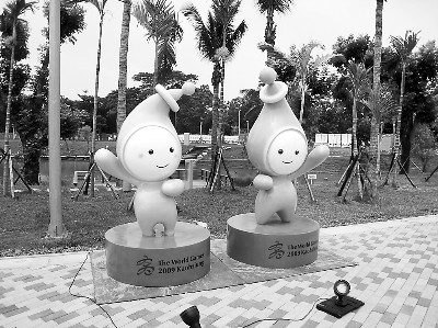 此次吉祥物的設計概念是以高雄市“光和水”兩大主題作為靈感,“高妹”與“雄哥”頭部造型像個小水滴,頭上的小球吸收太陽能后,身體就會發光,此構想概念是源自高雄世運會主場館特有的太陽能發電系統建筑設計,全球第一座使用太陽能的綠色建筑運動場館,傳達著對綠色能源、環境保護等議題的關心。(鄭固固攝)