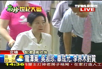中新網5月14日電 據臺灣TVBS報道,臺北地方法院14日再度開庭審理龍潭購地案,陳水扁夫人吳淑珍與臺泥董事長辜成允、前竹科管理局長李界木進行大對質。