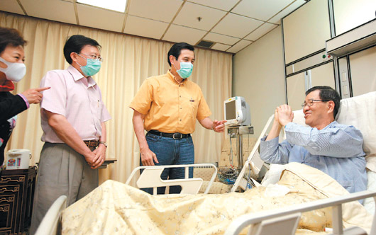 中新網(wǎng)5月25日電 據(jù)“中央社”報(bào)道,馬英九24日晚間偕同臺(tái)當(dāng)局“行政院長(zhǎng)”劉兆玄前往臺(tái)北榮民總醫(yī)院,探視進(jìn)行肺部腫瘤切除手術(shù)的蕭萬(wàn)長(zhǎng),馬英九希望蕭萬(wàn)長(zhǎng)安心靜養(yǎng),早日康復(fù)。