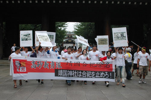 “還我祖靈隊(duì)”接著在大廣場(chǎng)上高歌“安魂曲”、吊祭早年被強(qiáng)迫合祀于靖國(guó)神社的祖先。他們?cè)趶V場(chǎng)停留近30分鐘后列隊(duì)步出靖國(guó)神社正殿,搭車離開現(xiàn)場(chǎng)。
