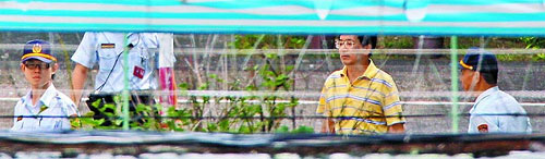 扁最近作息正常,每天放風(fēng),走出舍房曬太陽、運(yùn)動。北所為保護(hù)扁安全,今年1月起在他放風(fēng)的運(yùn)動場外掛起帆布,但前天仍被記者直擊扁放風(fēng)畫面。可以看出他剪了頭發(fā),穿著深藍(lán)色短褲、藍(lán)白拖鞋,繞著運(yùn)動場慢走。