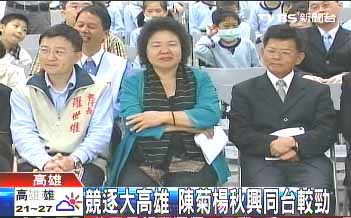 報道稱,陳菊跟楊秋興禮貌性地握手、點頭,現(xiàn)場氣氛嗅得到那么一點點較勁意味。被問道彼此見面會不會尷尬?楊秋興表示不會,很自然。陳菊也表示,這地方不適合互動聊天。