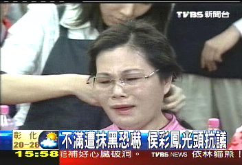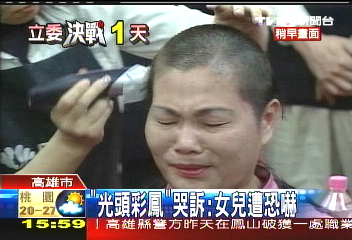 據臺灣TVBS報道,侯彩鳳一邊剃頭一邊眼眶泛淚,由于不滿對手放風聲,指她和家人、朋友涉嫌買票,讓她選情大受影響,更表示因為接到恐嚇信件,現在兒女都不敢回家,侯彩鳳也感到相當難過,因此今天以剃光頭表示無言抗議。