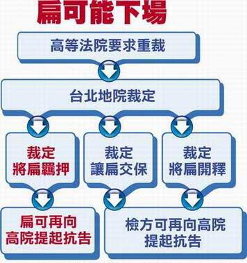 但到昨天,臺灣高等法院又以看不出有什么證據判斷扁的犯罪嫌疑重大,不能依以往權貴犯罪棄保潛逃例子押扁等理由,認為臺北法院不該把這些事項當作羈押條件。顯示在押扁與否的程序大戰中,臺灣高等法院在幾次裁定中,有時支持檢方的論點,有時又認同律師的觀點,也導致扁是否要被收押,至今仍無定論。