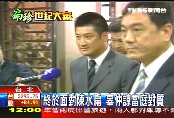 辜仲諒坐在證人席上、蹺著二郎腿等待庭訊開始,看似輕松的外表下,其實內(nèi)心有點忐忑緊張,當(dāng)陳水扁踏入法庭時,兩人都刻意避開眼神交集。