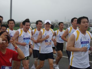 穿著短褲、排汗衣的馬英九帶著自己的慢跑鞋來到宜蘭參加路跑,再仔細看除了隨扈、官員團團包圍之外,光是跑在馬英九周圍的就是很多蘭陽指揮部的官兵。
