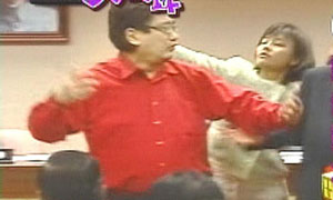 中新網4月22日電 據臺灣TVBS報道,臺灣“立法院”今天再度出現火爆場面,國民黨“立委”李慶華講話時突遭民進黨“立委”邱議瑩偷襲,被甩了一個耳光。李慶華召開記者會譴責民進黨是暴力黨,表示將對邱議瑩提告。