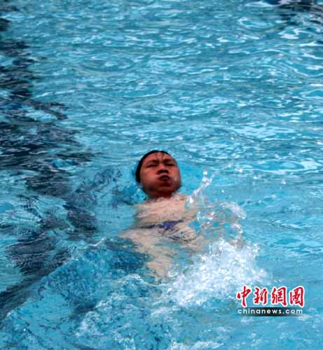 中新網荊門6月30日電(吳奇勇 潘小龍)記者今日在湖北荊門市體育中學游泳館看見,數名殘疾人運動員正在泳池里刻苦訓練,2004、2008兩屆殘疾人奧運會冠軍何軍權也赫然在內。