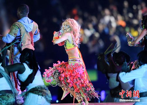 中新網(wǎng)7月12日電 北京時(shí)間12日凌晨,世界杯閉幕表演在南非約翰內(nèi)斯堡的足球城體育場(chǎng)舉行。出生于哥倫比亞的拉丁天后夏奇拉在閉幕式上唱響了本屆世界杯的主題歌《Waka Waka (This Time for Africa)》(《非洲時(shí)刻》),點(diǎn)燃了現(xiàn)場(chǎng)的激情。