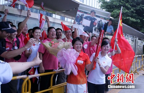 和黃利榮一樣處于興奮之中的羅湖邊檢站的同事們,早在兩天前就前去傳遞路線踩點。18日當天幾十名民警自發前往市民中心,拉著橫幅、高舉國旗,在火炬傳遞沿線為黃利榮吶喊助威。黃利榮表示,平安亞運任重道遠,她將以火炬傳遞為動力,和她的同事們一起,在邊檢崗位上竭誠為出入境旅客服務,為實現‘平安亞運’的目標不懈努力,做傳播亞運精神的文明使者。完