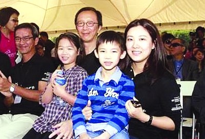 為了配合活動的需要,伏明霞與老公一同穿上了印有活動標記的T恤衫,顯得精神干練,而兒女的著裝則要休閑一些,看起來一家四口其樂融融,既是為活動添彩,也是同享天倫之樂。