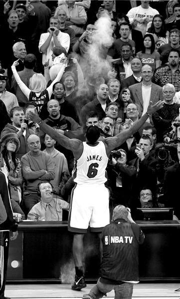 速貸球館曾是詹姆斯的天下,他可以在這里肆意地撒鎂粉,也可以瘋狂地咆哮,球迷們送給他的永遠是歡呼。昨天,他在這里從全民寵兒淪為全民公敵。盡管每次觸球都要忍受著現場兩萬多名騎士球迷震天的噓聲,但“小皇帝”咬著牙和這幫人對著干,他打出了38分8次助攻5個籃板的賽季最佳表現,率領熱火118比90大勝舊主。
