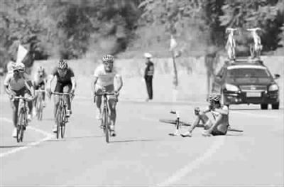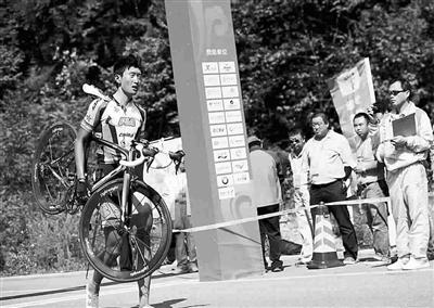 昨天在本溪進(jìn)行的第十二屆全運(yùn)會(huì)自行車男子公路個(gè)人賽中,解放軍隊(duì)選手吳佩倫在臨近終點(diǎn)沖刺時(shí)不慎摔倒(見上圖),但是他并未因此放棄比賽,而是扛著自行車走過終點(diǎn)線(見上圖),最終以4小時(shí)42分14秒的成績位列第26名。吳佩倫的行為,生動(dòng)體現(xiàn)了永不言棄的體育精神,賽后他說:“我到這里,不是來聽發(fā)令槍的,而是要沖過終點(diǎn)線的。”