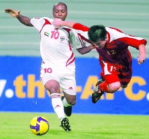 朝鮮隊(duì)無疑是這次十強(qiáng)賽中的黑馬,因此昨天的首次亮相也格外引人關(guān)注。昨天他們的對手是B組中實(shí)力比較弱的阿聯(lián)酋,兩隊(duì)都希望能夠在本場比賽中將對手拿下,借此增加出線的砝碼。在上半場比賽中,主場作戰(zhàn)的阿聯(lián)酋在場面上占優(yōu),頻頻對朝鮮隊(duì)的后防造成威脅,可惜阿聯(lián)酋隊(duì)的運(yùn)氣實(shí)在不夠好,沒能取得進(jìn)球。相反,朝鮮隊(duì)的運(yùn)氣卻異常的好。下半時(shí)第74分鐘,客場作戰(zhàn)的朝鮮隊(duì)利用薩義德的烏龍球以1比0領(lǐng)先。5分鐘之后,替補(bǔ)上場的安哲赫將比分變成2比0。在第85分鐘,薩義德將功補(bǔ)過,打進(jìn)一球,不過為時(shí)已晚,最終阿聯(lián)酋主場1比2不敵朝鮮隊(duì)。