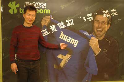 “他的瘋狂來自我,來自那個點球……”昨天格羅索通過音頻向黃健翔慰問,并空運送來寫有“huang”的意大利隊3號球衣。