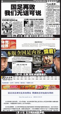 媒體以這樣的標題和版面設(shè)計方式來表達對國足的批評,讓人哭笑不得,不過,這從一個側(cè)面反映了球迷對中國足球恨鐵不成鋼的真實心情。