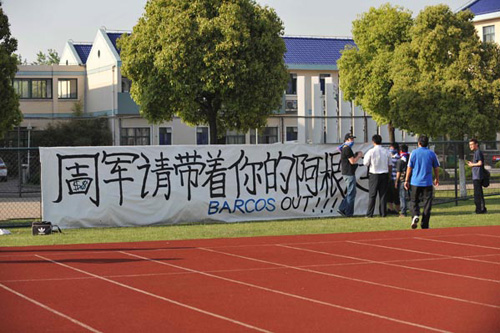 據(jù)現(xiàn)場目擊記者透露,該橫幅上的周字是經(jīng)過球迷改造的,周字中間的口部當(dāng)中出現(xiàn)了兩個代表美元的符號。據(jù)記者了解,之所以球迷將周軍的周字中間部分做成美元標(biāo)識,是因為有坊間傳聞申花的五千萬水貨外援讓其腰包鼓鼓。而橫幅還出現(xiàn)了巴爾克斯的名字,巴爾克斯在申花客場對新加波一戰(zhàn)中雖然攻進一球,但是錯失多次必進球機會,被認(rèn)為是申花亞冠出局的最大罪人之一,而他恰好是周軍找來的外援。
