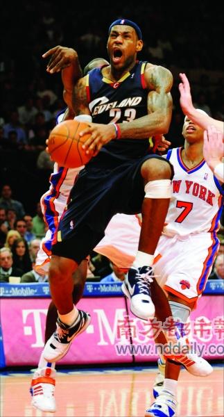 不過兩天前比賽的最后,麥迪遜花園球館里滿場響起“MVP”的呼聲,昨天的“皇帝”卻沒能享受如此待遇,雖然紐約人依舊對明年詹姆斯的加盟充滿期待,但主隊昨天直至最后仍未放棄獲勝希望讓主場球迷無法倒戈,終場前1分鐘尼克斯還僅以100比102落后兩分?上д材匪闺S后以個人第11次助攻幫助伊爾戈斯卡斯上籃成功,終場前22秒又搶下關鍵籃板迫使對手犯規,兩罰兩中完成了自己的得分50+,尼克斯無力翻盤。