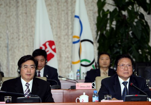 北京市委副書記、代市長郭金龍出席會議。國際奧委會主席羅格主持會議。