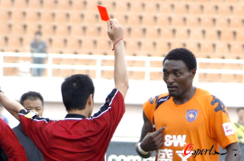 此時,正在青島隊后場的外援保羅尤如吃錯藥一般,儼然武圣關(guān)羽“靈魂附體”,從后場狂奔50米沖到事發(fā)地點,分別與遼寧隊幾名本土球員以及外援格里菲斯發(fā)生爭執(zhí),甚至還施展鎖喉大法,雙手卡住格里菲斯的咽喉,頗具千里走單騎,過五關(guān)斬六將之風。主裁當即將這位勇若張飛、豪比關(guān)羽的黑面大俠請出了綠茵場。