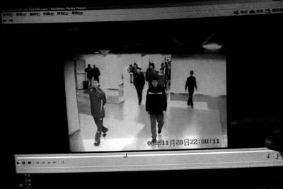 記者是昨日17時30分左右,進入監(jiān)控室。當記者提出要看當日賽后的監(jiān)控錄像時,監(jiān)控室里的工作人員很熟練地找到錄像視頻并將視頻快進到事發(fā)時間段,還告訴記者,劉煒和上海隊幾點開始行動,顯然他們已經看這段錄像很多次了。不過,看完這段11分鐘(22時-22時11分)的監(jiān)控錄像后,讓目睹“打架門”整個過程的記者驚訝的是,由于當時通道上方的攝像頭對準的是上海隊休息室方向,監(jiān)控錄像記下的是上海隊隊員在向攝像頭方向來回走動、張望以及上海隊員沖向攝像頭的畫面,并沒有記錄下打架的場面。