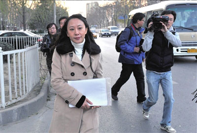 庭審結(jié)束后,陸幽快速離開法院。本報(bào)記者董世彪攝