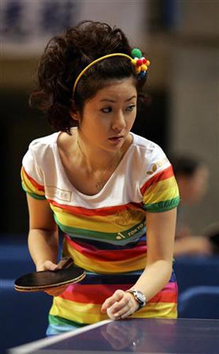 在日本乒壇,福原愛名聲最大,其次就是有著漂亮臉蛋、性感身材的四元奈生美了。今年30歲的四元在日本的影響并不比福原愛低多少。從2007年的全日本乒乓球錦標賽至今,這位美女球員每次比賽都會換上不同的時尚超短裙,或是露出香肩的吊帶衫參賽。而且,她的頭飾也都是經過發型師精心設計的,爆炸式、淑女式……總之,五顏六色的服裝+各類怪異的發型+比賽場上揮拍動作都是那么的迷人,相比于其他運動員的一臉嚴肅,四元奈生美在賽場上刮起的時尚之風迷倒了很多日本男球迷。