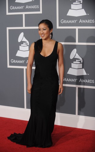 關(guān)穎珊一襲黑色禮服登臺(tái)亮相,在格萊美頒獎(jiǎng)禮的紅地毯映襯之下,即顯得高貴優(yōu)雅,又性感迷人。