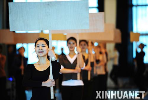汪燕介紹,大冬會持牌手的訓練參照了2008年奧運會禮儀小姐的訓練方法。訓練主要集中在體能、形體和綜合禮儀三門課程上。看似簡單普通的站姿、行走、轉身、微笑,每一個動作都有嚴格的要求,都要分解練習上百次。長時間舉牌對女孩們的臂力和體力都是很大的挑戰,在體能訓練中,汪教練要求女孩手持裝滿沙子的礦泉水瓶跳健身操。雖然訓練異常艱苦,但這群“80后”的姑娘們沒有怨言,有些持牌手甚至帶病訓練。