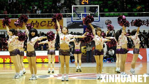 圖為在比賽間隙,“籃球寶貝”進行表演。(3月1日攝)新華社記者李鋼攝
