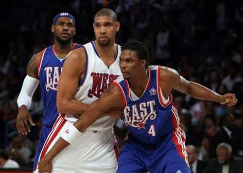 在首發陣容上,西部為姚明、鄧肯、安東尼、科比和艾弗森,東部則為霍華德、波什、詹姆斯、韋德和基德。