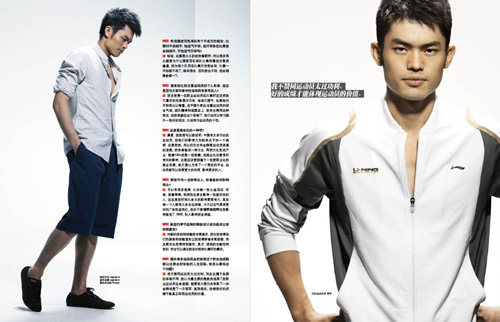 林丹:呵呵,也沒有那么好,只不過我們平時運動時間特別緊張,空閑時間很少,所以看雜志是很多運動員的放松方式。我就很喜歡看時尚雜志,另外我也會經常出國比賽,會看到一些比較時尚的事物。最主要看自己的敏銳度,多去觀察,尋找適合自己的東西,不一定要跟流行,比如今年流行裙子,但我不可能跑去買條裙子穿。