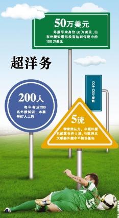 根據亞足聯的3+1政策,中超聯賽本賽季每支球隊可簽約5名外援(含1名亞洲球員),目前效力中超的外援實際人數為67人,理論上的外援上限則為80人。據記者了解,目前中超各俱樂部,對外援的開銷基本控制在50萬美元/人(特別優秀的球員可能高于此數),以此推算,整個中超聯賽每年外援總成本在4000萬美元左右。