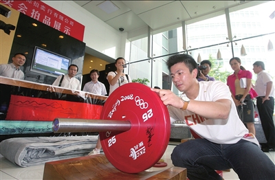 民間奧運藏品拍賣爭奪激烈張湘祥奪冠杠鈴拍得7.2萬元