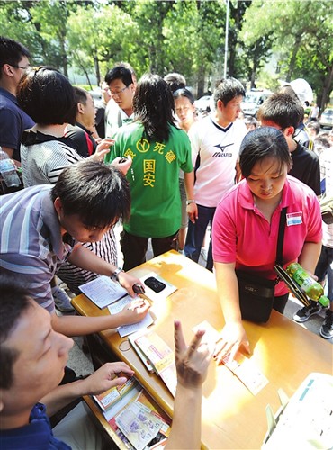 昨天上午10點多,300余名球迷涌入工體國安足球俱樂部,抗議在苦等數小時后仍買不到本月30日國安與魯能比賽的門票,指稱售票窗口與“黃牛”勾結,使得大量門票落入“黃牛”手中。最終,為安撫球迷們的情緒,國安俱樂部破例追加售票。 >>現場球迷擠破暖氣片