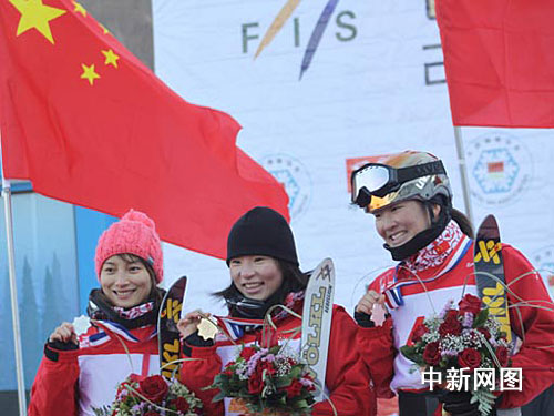 中新網長春12月19日電 (張天虎)12月19日,2009-2010自由式滑雪國際雪聯世界杯賽首戰比賽在長春蓮花山滑雪場開戰,中國女隊郭心心以總分206.09分的成績摘得冠軍,李妮娜和徐夢桃分別獲得亞軍和季軍。但在上午的男子預賽中,韓曉鵬出現失誤,最終無緣決賽。