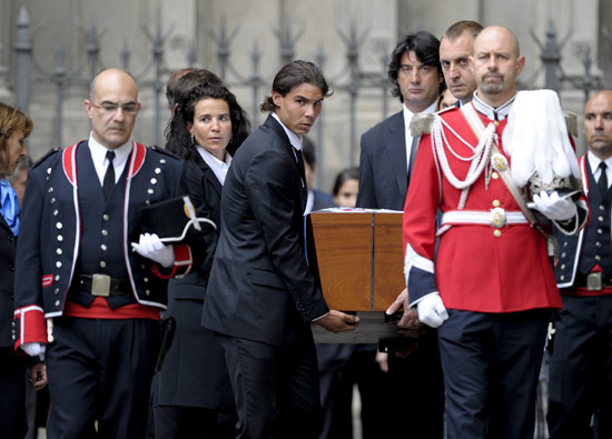 晚上18時(shí),他的葬禮在大教堂開始,西班牙國王胡安-卡洛斯攜妻子索菲婭、王儲(chǔ)費(fèi)利佩及妻子、埃倫娜公主和克里斯蒂娜公主以及羅格、西班牙著名F1車手阿隆索、西班牙網(wǎng)球天王納達(dá)爾、巴薩俱樂部主席等出席。