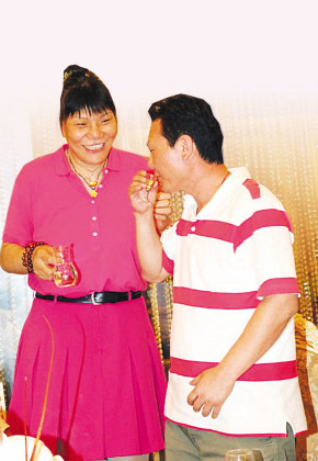 上午10點30分,一輛寶藍色的本田商務車抵達酒店門前,身著一襲寶藍色連衣裙的鄭海霞和西裝筆挺的夫婿徐慶華下車后迅速進入酒店,路人甚至都沒來得及認出海霞。11點30分,在一間不大的會議室內,隨著現場輕柔的樂曲,司儀宣布婚禮開始,現場100多位嘉賓、親友聚攏在婚禮臺四周,一同目睹了鄭海霞與丈夫徐慶華的優雅現身。盡管對于此次婚禮鄭海霞夫婦一再要求低調,但在前天的婚禮現場,一些必要的程序還是照常進行。大概是要難為一下昔日的“亞洲女籃第一中鋒”,現場司儀要求海霞對婆婆改口時用標準的河南話喊一聲“娘”,惹得見過無數大世面的鄭海霞當場紅臉。但在親友們的一再鼓勵下,海霞還是羞澀地完成了任務,大喊了一聲“娘”。