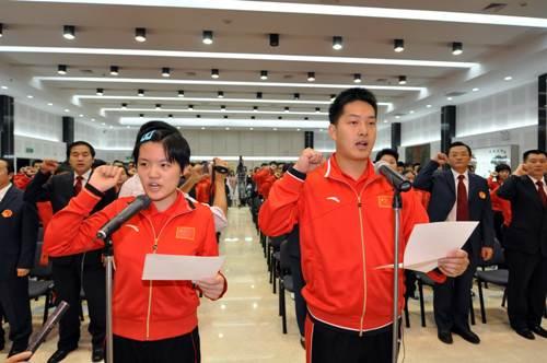 圍棋棋手常昊九段與國際象棋世界亞軍侯逸凡作為代表,帶領中國體育代表團全體成員面向國旗向祖國和人民作了莊嚴宣誓。