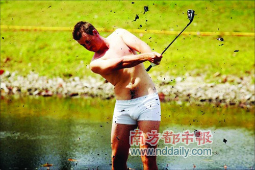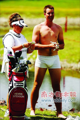 日前,高爾夫WGC-CA錦標(biāo)賽首輪,瑞典高爾夫名將亨利克·斯滕森脫光衣服救球的“壯舉”無(wú)疑是賽場(chǎng)上最吸引眼球的風(fēng)景。當(dāng)日在第3洞4桿洞,斯滕森直接將球開(kāi)進(jìn)了球道旁的淤泥中,瑞典人一不做二不休,索性脫掉衣服鞋襪,僅剩一條內(nèi)褲徑直走進(jìn)泥里,引起場(chǎng)邊觀眾一陣騷動(dòng),斯滕森不負(fù)眾望,這一洞一舉吞下一個(gè)柏忌,最終以69桿排名第17位。