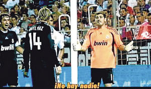 首先是卡西利亞斯抱怨古蒂的站位,他認為古蒂一開始的站位太靠前,那兒并沒有塞維利亞的進攻隊員。而當(dāng)卡西向古蒂吼了幾句之后,古蒂也進行了回應(yīng),兩人之間的對話大致如下: