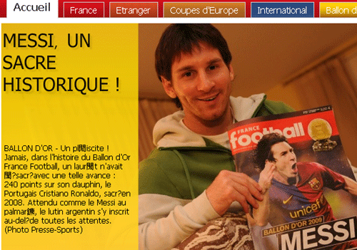 中新網(wǎng)12月1日電 今天上午,《法國足球》雜志公布了2009年金球獎的最終結(jié)果,阿根廷籍的巴塞羅那球星梅西首度榮膺此項殊榮。