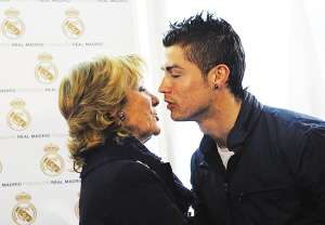 北京時間昨天是C羅的生日,他和皇馬主席弗洛倫蒂諾一起在伯納烏參加了一項新聞發(fā)布會。皇馬俱樂部與馬德里大區(qū)達成了合作協(xié)議,皇馬基金會將會投資幫助馬德里大區(qū)那些未成年人、外國移民等等。在新聞發(fā)布會現(xiàn)場,C羅和弗洛倫蒂諾開起了玩笑。皇馬主席問C羅“你現(xiàn)在多大了”,C羅回答“我20歲了”。弗洛倫蒂諾當(dāng)即揭穿了C羅的謊言:“你已經(jīng)25歲了,你竟然已經(jīng)這么老了!”當(dāng)然,這次玩笑以全場歡笑告終。 作為皇馬代表,C羅還與馬德里大區(qū)女主席阿吉雷進行了親密接觸。盡管阿吉雷的年齡足以當(dāng)C羅的奶奶,但葡萄牙人還是跟她來了一個貼面熱吻。在被C羅熱吻之后,阿吉雷顯得非常高興,立刻說:“C羅是世界上最出色的球員,沒有之一。”同時阿吉雷也宣稱,“皇馬是歷史上最出色的足球俱樂部。”